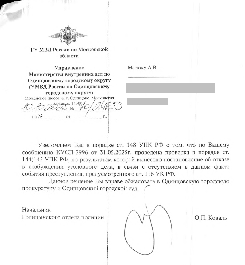 Суть их отписки сводится к тому, что они не нашли состава преступления: