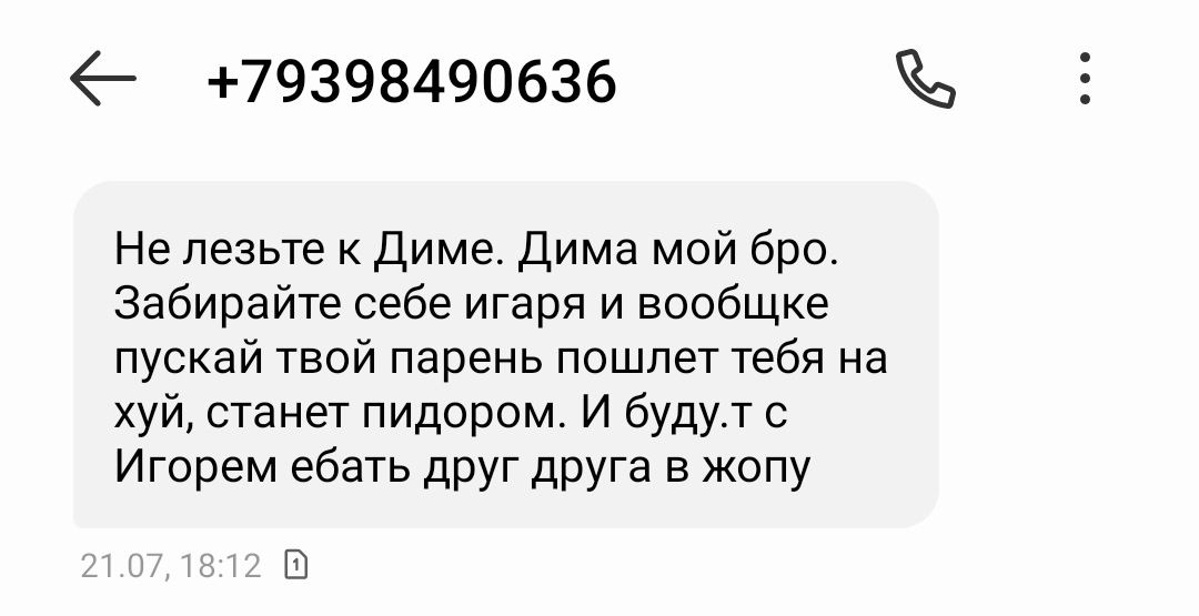 В этом смс не содержится никаких угроз (они есть в других смс),
